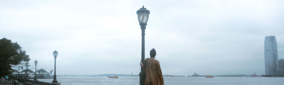 On the Hudson River waterfront in Battery Park City, a woman contemplates the harbor before an afternoon rainstorm. (June 8, 2014)