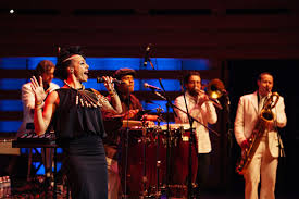 Daulne has made her home in New York since 2000, and she’s on a collaborative tour with the Brooklyn-based group Antibalas. The expansive rhythm machine, infused with Daptone Records horns, was founded by the saxophonist Martín Perna and fronted by the charismatic singer Duke Amayo, and is best known for its onstage work, several years ago, as the band for the Broadway show “Fela!” (NewYorker). If you saw “Fela” you know these guys are good.