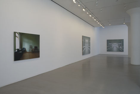 “The work of this London Photorealist sits somewhere on a spectrum between the paintings of Gerhard Richter and those of Robert Bechtle. He depicts subjects that are both pregnant with mystery and suffused with alienated air that keeps the viewer at a psychological remove; nonetheless, his compositions offer considerable visual pleasures. His latest series is based on photos he took of British art schools during summer hiatus, when studios are usually cleaned out. The results evoke the idea of a clean slate, or an empty canvas awaiting the first brushstroke.” (TONY)