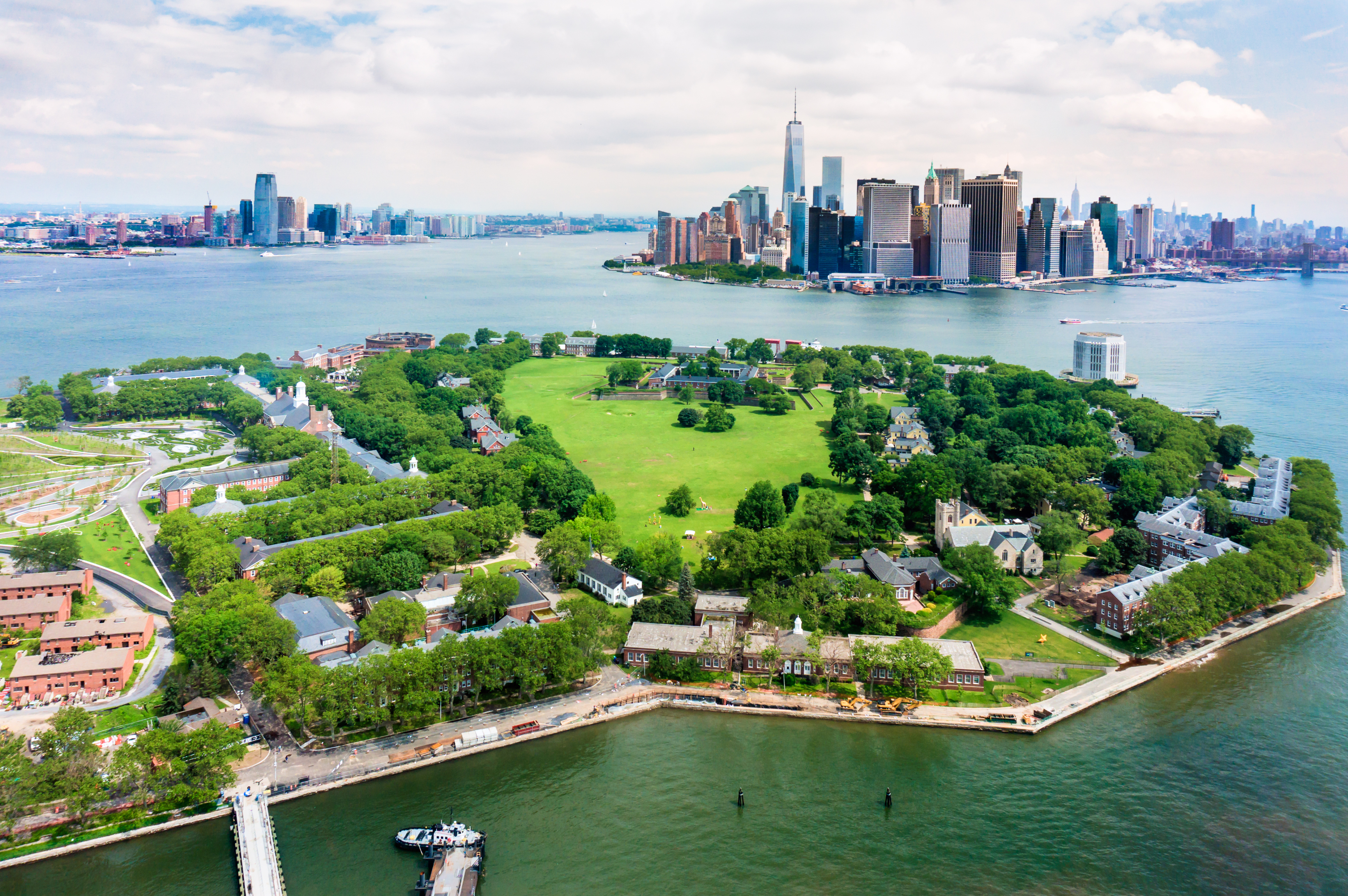 View of Governors Island and Manhattan from air